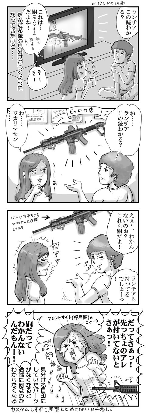どちらさまですか? 2012.03.23 アニメ・漫画 サバゲじょしランチアのブログまんがを掲載中!! イラスト好きの一般女子がサバゲにどっぷりハマっていく様子をご堪能ください。毎週金曜日21時更新!! 本家 サバゲじょしランチアのブログまんが はコチラ ※本コンテンツはランチアさんの転載許可を得て掲載しています。 この記事が役に立ったら、ぜひシェアしてください。 Post 関連記事 2012.02.10 ようこそ大日本帝国へ【後編】 2014.06.13 ウルヴァリン vs プレデター!? ヒーローたちの異種格闘戦が凄い!! 2012.12.06 アルマジロ 2012.05.04 サバゲ4コマ 狙撃 byユメピョン 関連アイテム 東京マルイ H&K MP5A5 電動ガンBOYs [ サブマシンガン(対象年令10才以上) ] サバゲー 電動ガン ライフル マシンガン ネズミ除… 8,130円 東京マルイ スミス&ウェッソン PC356 [ 電動ブローバック フルオート/対象年令10才以上 ] サバゲー 電動ガン ブローバック ネズ… 4,353円 東京マルイ 18歳以上用 電動ハンドガン H&K USP ブラックカラー 【あす楽】 15,800円 東京マルイ ハイキャパE ガバメントモデル 電動ガン ハンドガンタイプ 【あす楽】 17,980円 《週間フェア》S&T UMP スポーツライン 電動ガン BK 【180日間安心保証つき】 13,860円 Supported by 楽天ウェブサービス もっと「電動ガン」を、 楽天市場で探す | amazonで探す