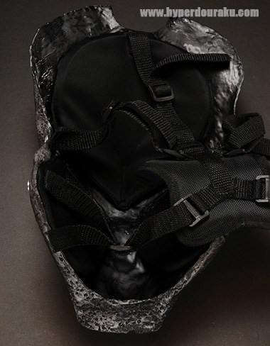でも裏面は顔にフィットするクッションとガッチリ頭部に固定できる4点式のベルトで確実に装着できます。激しく動いても大丈夫そう。