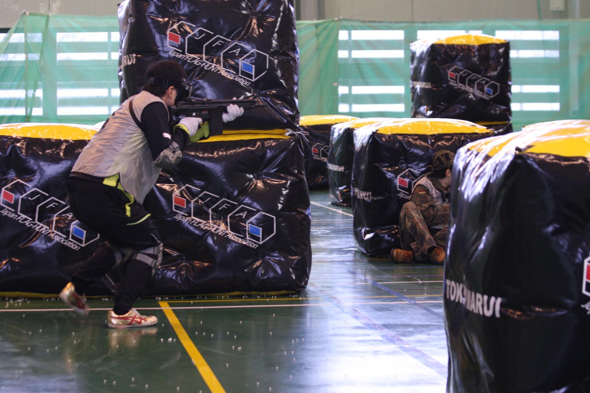 6mmのプラスチック弾を発射する競技用銃を使い、バスケットコート約2面分の競技場において、時間内にて、相手の陣地のフラッグを奪取すれば勝ち。