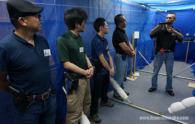 1階に入るといきなりシューティングレンジです。誰かが利用しているときに扉を開けるときにはノックをしなくてはいけません。もちろんシューティンググラスは必須です。