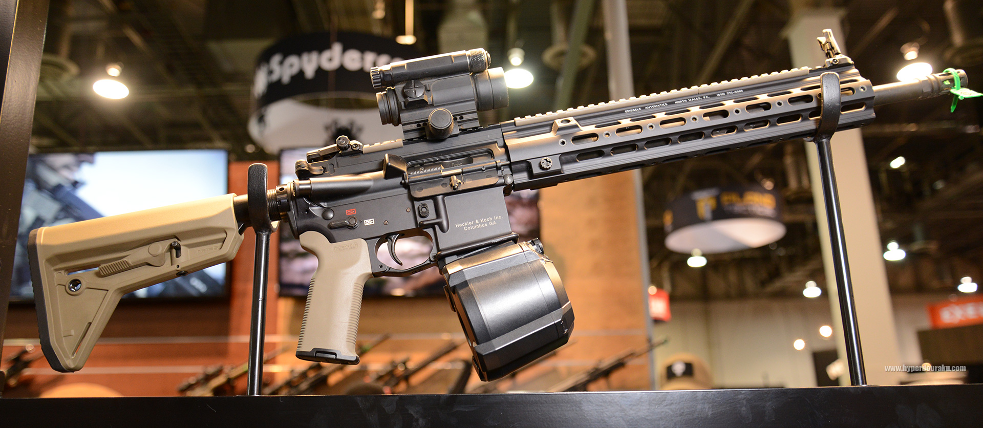 2015年の米ショットショーのマグプルブースで展示されていたHK416(MR556)のカスタムを紹介しましょう。