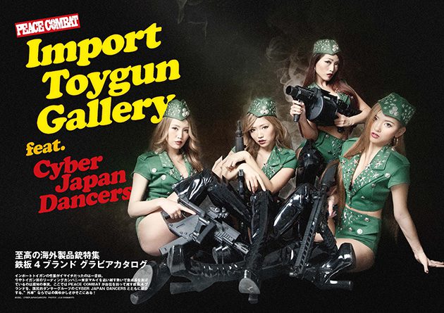続きまして、今号の第1特集は、海外製品銃特集です!今や世界を股にかけて活躍しているゴーゴーダンサーチーム、サイバージャパンダンサーズをお迎えして、PEACE COMBATが自信を持って推す海外銃ブランドを手厚く特集しております。
