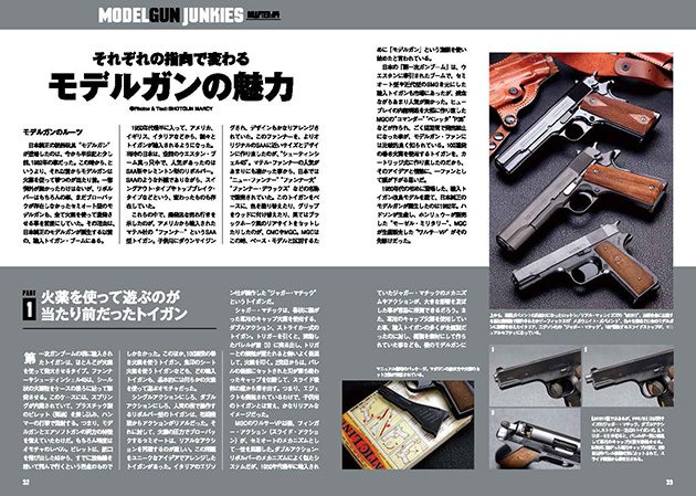 エアソフトガン世代のガンナッツたちは、そんな疑問もあると思います。そこでトイガン設計の第一人者にしてレジェンドの小林太三氏のインタビューをはじめ、モデルガン発火を楽しむ、モデルガンの種類、メンテナンスと、様々な角度からモデルガンの魅力・楽しさを再発見します。