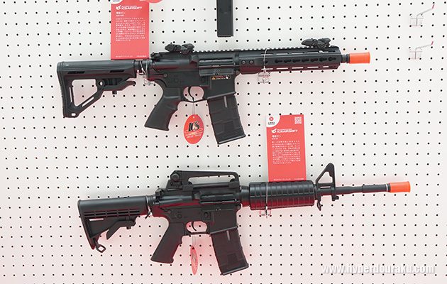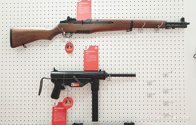 展示されていた電動ガンは上から、ICS-202(M1ガーランド)、ICS-200(M3グリースガン)。