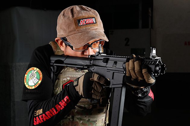 一方、アメリカで流行しているPCC(ピストル・キャリバー・カービン)をイメージしたG&GアーマメントのARP9は、SGR-12とは対照的にコンパクトで取り回しやすい。前作PDW15 ARではバッテリーの収納スペースが狭く、使用可能なバッテリーが限定されていた。しかし、ARP9では収納スペースが拡大され、バッテリーが選びやすくなった。グロックタイプの連射マガジンはARP9専用。装弾数は300発だが、スペアマガジンが欲しいところだ。MOSFETが標準装備されているので、キレのいいセミオートと、フルオートから3バーストへの切り替えができる。