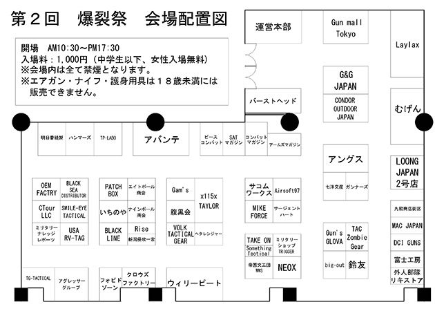 G&G JAPAN / CONDOR OUTDOOR JAPAN / LayLax / ガンショップアングス / AIRSOFT 97 / 九龍 商店街区 / ウイリーピート / むげん東京店 / GUNMALL TOKYO / 明日香縫製 / ハンマーズ / P.T.LABO / AGGRESSOR- GROUP / VOLK TACTICAL GEAR / CROWS‘Sfactory /アバンテ / Gamis / OEM FACTORY / MAC JAPAN / LoongJapan2号店 / NEOX / BLACKSEA DISTRIBUTOR / Rise / TRi.S workshop / GUN’zGLOVA / sacom works / x1 5xTAYLOR / USARV-TAG / 腹黒会 / TG-TACTICAL / いちのや / BigOut / エイトボール商会 / ナインボール商会/ ヘタレンジャー / 鈴友 / 外人部隊リキストア / BURST-HEAD / 新潟侵攻一家 / TAKE ON / SOMETHING TACTICAL / 帝国文工団 ww3 / DCI GUNS / ガンナーズ / BLACK LINE / TAC -ZombieGear / ARMSMAGAZINE / COMBATMAGAZINE / PEACECOMBAT / SATMAGAZINE / 七 洋 交 産 / ミリタリーナレッジレポーツ / ミリタリーショップTRIGGER /サージェントハート / フォビドゾーン / MIKE FORCE / 富士工房 / patchbox / C-Tours LLC / SMILE-EYE TACTICAL (順不同)