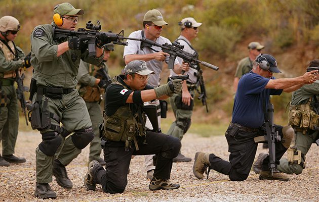 機会あるごとに、アメリカで実銃を使用した様々なタクティカル訓練を受講し、絶えず、最新のテクニックの取得に努めている。