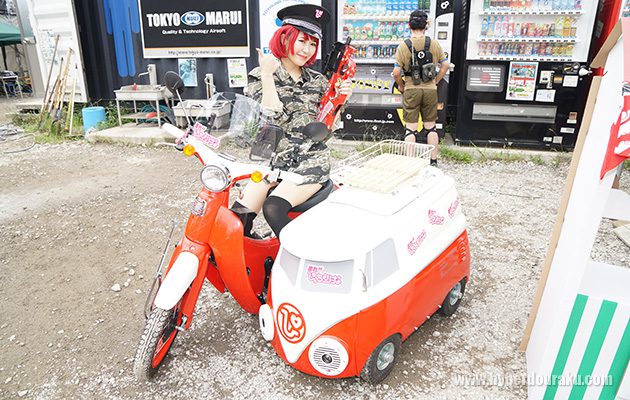 MCの戦え!!ぴっちょりーなのバイクが展示されてました。サイドカー付きで90ccにボアアップ。中型免許で乗れるそう。