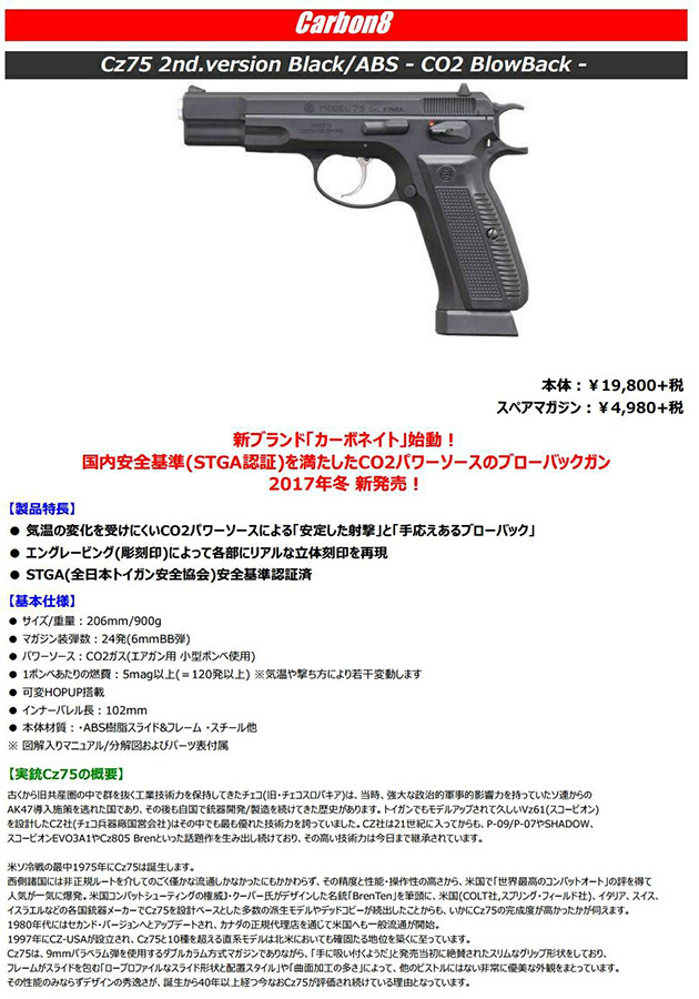 STGA(全日本トイガン安全協会)認証のCO2ブローバック・ピストルが11月下旬に新発売!