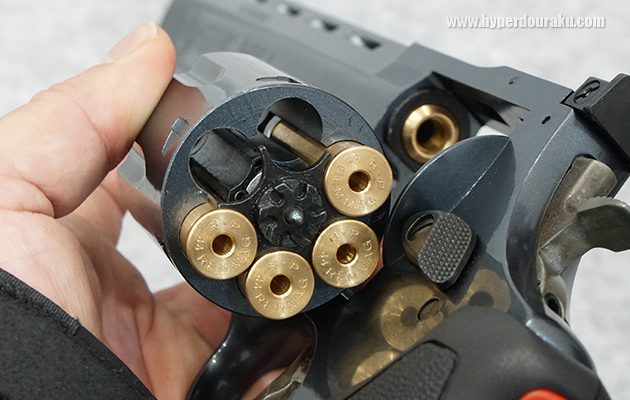 専用カートリッジ6発付きで、リムには.44口径の刻印があります。