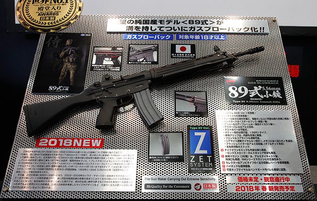 2017年を振り返るのは来月にして、今月はやはり11月11日と12日に開催された「東京マルイフェスティバル4th in ベルサール秋葉原」に展示された次期新製品について語らなくてはならないでしょう。ハイパー道楽をご覧の方ならご存知かと思いますが、もっとも話題をさらった新製品は、なんと言っても「89式5.56mm小銃固定銃床型ガスブローバックガン」ではないでしょうか。事前に公開されたティザー広告から、私は電動ガンベースの東京マルイオリジナルの改修型かと予想したのですが、期待をいい意味で大きく、大きく、大きく裏切ってくれました。