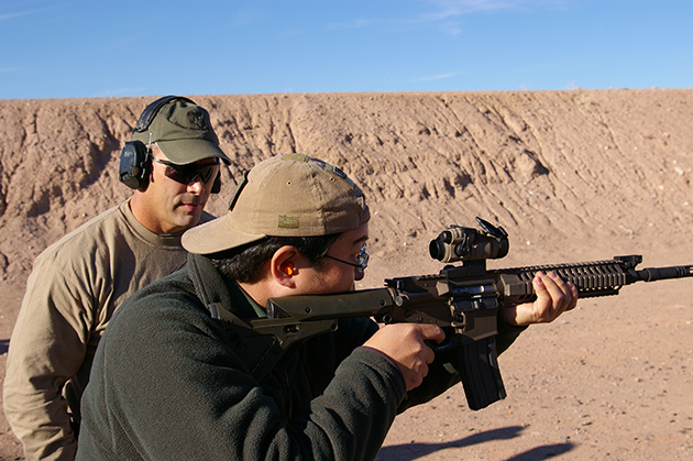 写真は、1枚目2008年に行った際に、映画『ブラックホーク・ダウン』で知られる「ブラック・シーの戦い」を経験した伝説のデルタフォース隊員であるポール・ハウ氏の横でM4カスタムを撃っているもの。