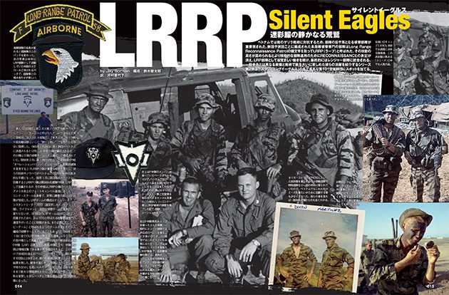 アメリカの国鳥である白頭鷲をモチーフにした部隊章を持つ第101空挺師団。彼らもまた長距離専門の偵察部隊LRRPを編成。同師団LRRPの貴重な写真とともに、静かなる鷲「サイレント・イーグル」たちの活躍をレポートしております。
