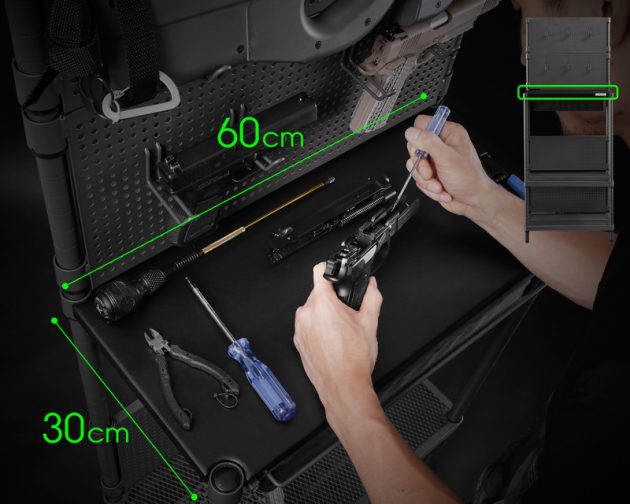 ハンドガンのメンテナンスなど、作業台としても活躍します。