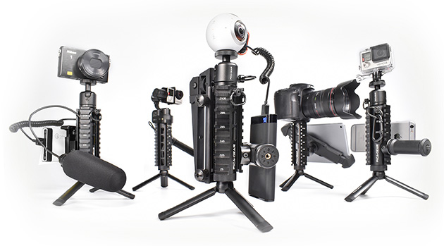 現在スマートフォン用のリグシステムというものも市販化されていますが、PICA-PODの違うところは機材の主役が撮影者によって変えられるという点。一眼レフカメラをメインに組み立てることもできるし、アクションカメラをメインにすることもでき、コンデジやスマートフォンもメインの機材として生かすこともできます。そしてマイクやジンバルスタビライザー、モバイルバッテリーなどを追加装備できるのがPICA-PODです。