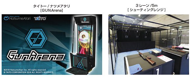 さらには、タイトーとナツメアタリが共同開発した、エアガンを使用し、液晶モニター上のターゲットを撃てる筐体「GUN Arena」も設置!