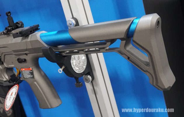ストックレスモデルとフォールディングストック付きのRTSの二種類が展示されていた。