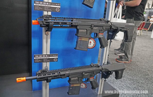 G2ギアボックスを内蔵した7.62mmサイズの電動ガン、TR16 SBR 308 Mk IIと、TR16 SBR 308 Mk I。