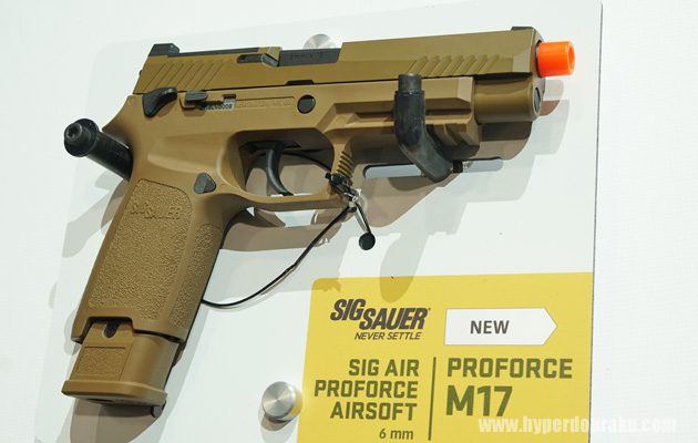 SIGのブースではAIRSOFTも多く展示されていた。M17のGBB。グリーンガス仕様。