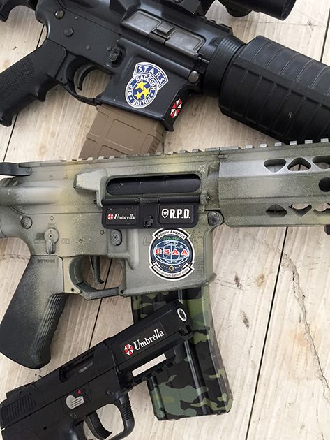 そして今回の目玉付録として、BIOHAZARDのロゴステッカーが付いてきます!つや消しマット加工で銃にも貼れる!ステッカーです。カプコンに何カ月も前からアプローチしてようやく制作できた、バイオオフィシャルロゴになります!マガジンハウジングやポートカバー、ハンドガンのスライド部分やマガジンの底部など、いろいろな採寸で作ってありますので、お好みで使ってください。ちなみにこちらの自社販売サイトから購入すると、バイオステッカーが追加で2枚(合計3枚)付いてきます。