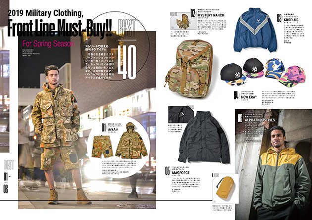 その他、他紙があまりやらないショップ取材系スタイリングページや、この春の新作縛りで集めたミリタリーブランドアパレルページなど、見どころ満載です。