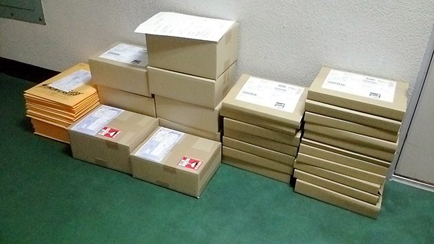 段ボールは主にエアガン専門店やミリタリーサープラス店販売用のもの。こちらは宅急便なので到着日から即販売していると思います