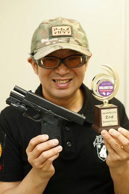 結果としては、思わぬ伏兵が現れて2位だったのですが、入賞できたことは嬉しいです。また、1位の方とは約2秒差、3位の方とは5秒近いタイム差があったので、今度はぶっちぎりで1位を獲得したいです。今回、ケイ・ホビーのアサルトフレームを装着した東京マルイのグロック19サードジェネレーションを使ったのですが、「動いて」「当って」「壊れない」の三原則をしっかり発揮できるポテンシャルの高さにあらためて感動しました。今秋にはリミティッドが開催されるので、今度はどの銃で参加しようか今から悩んでいます。もしかしたら意外な銃で参加するかもしれません。