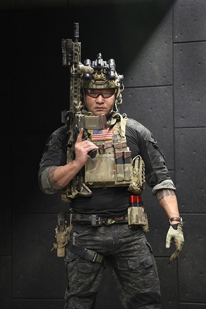 巻頭特集は「アメリカ陸軍特殊部隊」。本誌2019年1月号で紹介した元アメリカ陸軍特殊部隊グリーンベレー出身で、軍歴20年以上のコンバットベテラン・Tu Lam氏が主宰する「RONIN TACTICS」のコンバットカービンコースを特別に取材することに成功。Tu Lam氏がセットアップしたガン&ギア、コースで教えている実戦向けにテクニックを解説するとともに、エアガンや国内に流通しているギアで再現できる陸軍特殊部隊のセットアップを紹介しています。
