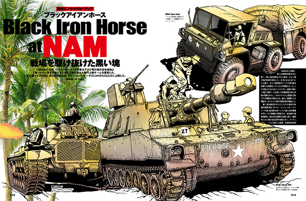 ベトナム戦争で米軍に使用された戦車をはじめ、装甲車や兵員輸送車、ジープ、バイクなどのアイアンホースたち。どのような車輌が使用されたかをイラストと共に紹介する。
