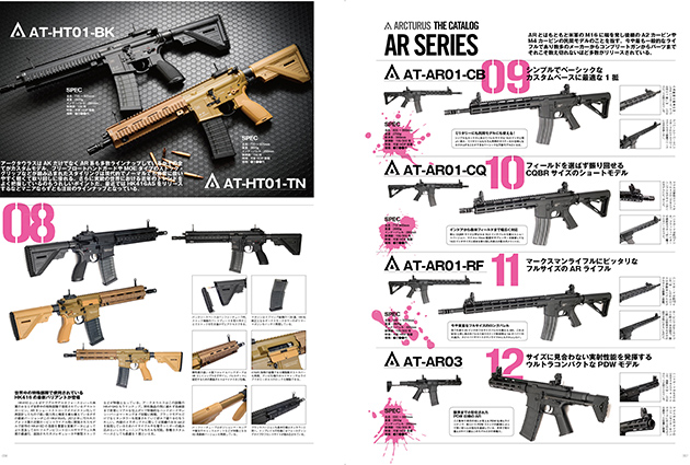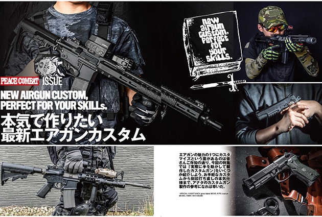 では早速中身なんですけど、1特では今回「本気で作る最新エアガンカスタム」ということで、お手軽の簡単カスタムから刻印打ち直しの本気仕様までいくつかを実際に制作。その手順を紹介する内容になっています。作ったのは、WILSON COMBAT ELITE CUSTOM ベースガン:東京マルイ バイオハザード アルバート01P、COLT RAILGUN TACTICAL CUSTOM ベースガン:東京マルイ M45A1ブラック。その他M4やSMGもテーマ別にカスタムパターンを提案。ぜひ、自身のカスタマイズの参考にしてください!写真も載せておきます。