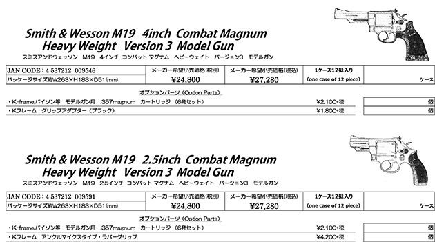 スミスアンドウェッソン M19 4インチ コンバット マグナム ヘビーウェイト バージョン3 モデルガン