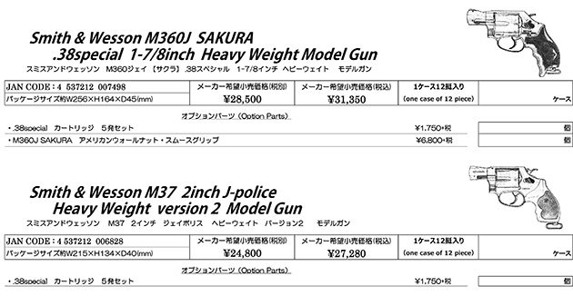 スミスアンドウェッソン M360ジェイ 【サクラ】 .38スペシャル 1-7/8インチ ヘビーウェイト モデルガン