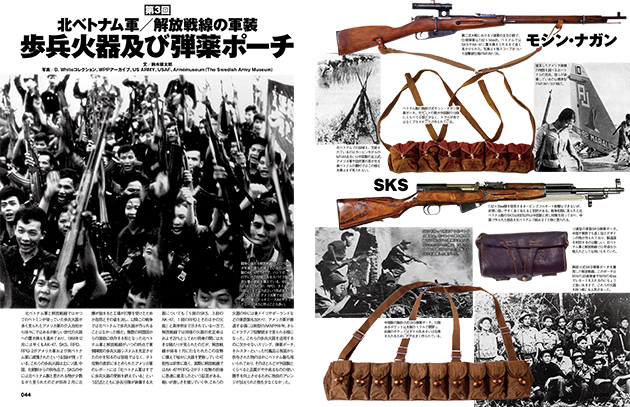 • 北ベトナム軍と解放戦線で使用されていた歩兵火器及び弾薬ポーチを詳細に解説。複数の同盟国からの援助に依存する形となった北ベトナム軍と解放戦線が、いつの時点で東側陣営の歩兵火器システムを充足させたのかを知るのは容易ではないが、様々な資料を読み解き、北ベトナム軍と解放戦線の武器実情に迫る、マニア必見、資料性抜群のリポートです!