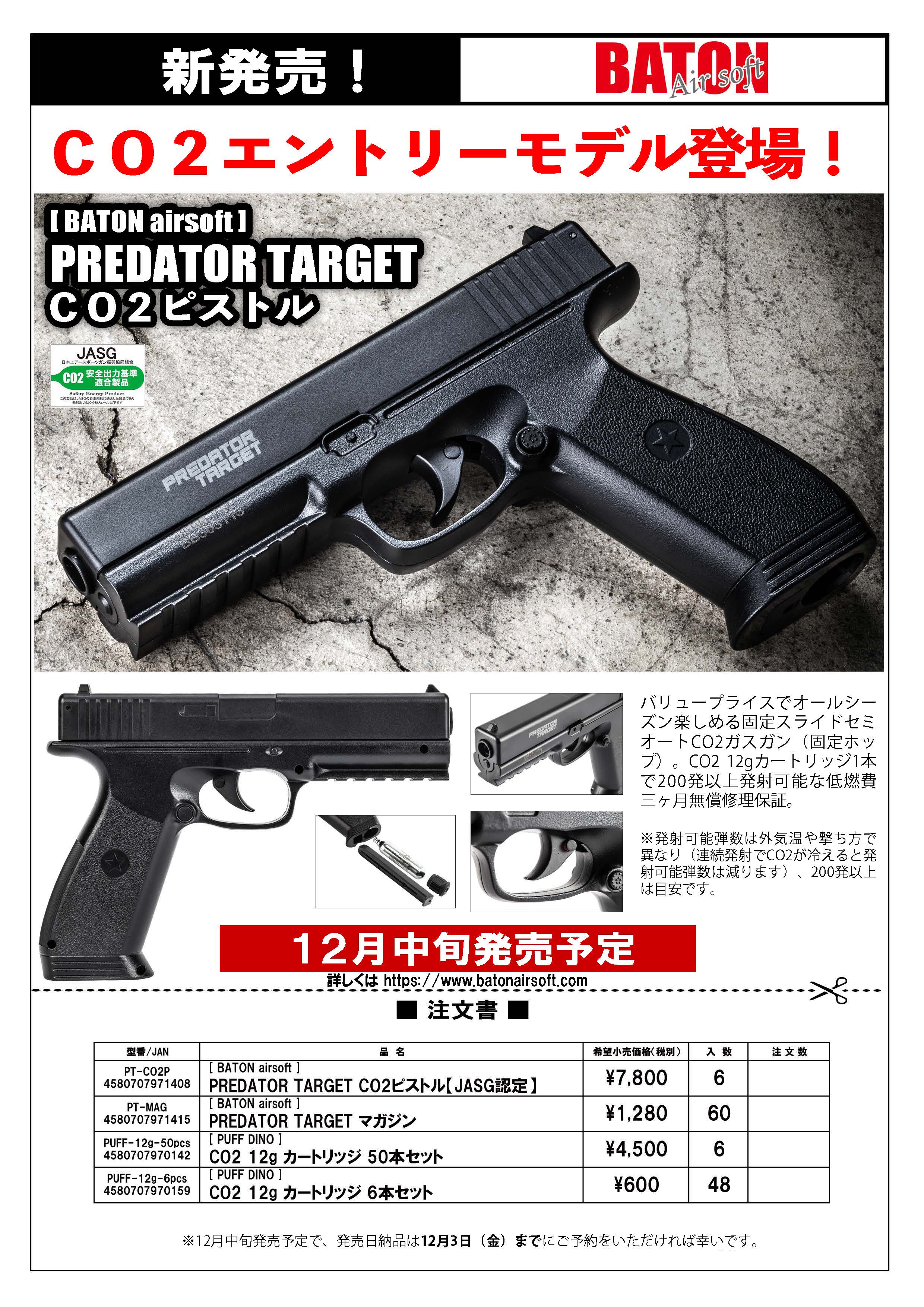 BATON AirsoftからCO2エントリーモデル登場! PREDATOR TARGET 2021.11.24 ガスガン BATON AirsoftからCO2エントリーモデル登場! PREDATOR TARGET CO2ピストル 価格 7,800円(税別) 提供:フジカンパニー この記事が役に立ったら、ぜひシェアしてください。 Post 関連記事 2016.05.04 東京マルイ新商品 ガスショットガン KSGの想像図 2013.08.08 レトロGUN MGC グロック17 2015.12.05 ショットショージャパン 東京マルイ展示 2022.01.19 マルシン工業からランダルカスタムが本日出荷 関連アイテム 東京マルイ USPコンパクト ガスブローバック 【あす楽】 17,500円 DCI Guns 東京マルイ M9/M9A1用11mm正ネジメタルアウターバレル ブラック BK black エアガン エアーガン ガスガン ブローバック… 7,150円 【ゲリラSALE中!】【楽天ランキング1位】【ARMY FORCE 製】 東京マルイ GBB M1911/MEU 類似形状 KIMBERスタイル アルミ スライ… 5,980円 東京マルイ S&W M&P9 Vカスタム ガスブローバック ハンドガン 【あす楽】 18,980円 グロック マガジン G17 G18C G26アドヴァンス G34 25連 東京マルイ アドバンス ガスガン ハンドガン 2,990円 Supported by 楽天ウェブサービス もっと「ガスガン マルイ」を、 楽天市場で探す | amazonで探す