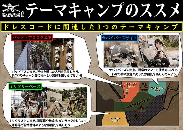 “破壊可能テントエリアとは別”に、ドレスコードごとにテーマキャンプエリアが設けられ