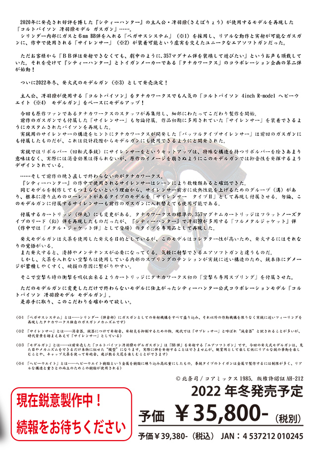 タナカワークス コルト パイソン 冴羽獠モデルがモデルガンで2022年冬登場! 2022.07.14 モデルガン この記事が役に立ったら、ぜひシェアしてください。 Post 関連記事 2013.07.04 今となっては超レアな平玉火薬が発掘される 2022.03.03 モデルガン M16A1/XM177E2/M655カービン専用 A7075 PFカートリッジ 2022.02.19 マルシン工業 M16A1 XM177E2 M655カービン出荷! 2017.11.01 第2回むげんモデルガンファイアーフェスティバル レポート 関連アイテム 東京マルイ H&K MP5A5 電動ガンBOYs [ サブマシンガン(対象年令10才以上) ] サバゲー 電動ガン ライフル マシンガン ネズミ除… 8,130円 東京マルイ スミス&ウェッソン PC356 [ 電動ブローバック フルオート/対象年令10才以上 ] サバゲー 電動ガン ブローバック ネズ… 4,353円 東京マルイ 18歳以上用 電動ハンドガン H&K USP ブラックカラー 【あす楽】 15,800円 東京マルイ ハイキャパE ガバメントモデル 電動ガン ハンドガンタイプ 【あす楽】 17,980円 東京マルイ対応 電動ガン 互換 ミニSバッテリー ニッケル水素 1600mAh【使用時間23%アップ】 [ランキング受賞] 1,969円 Supported by 楽天ウェブサービス もっと「電動ガン」を、 楽天市場で探す | amazonで探す