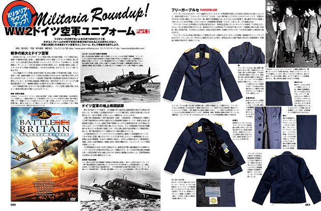 ●マニアのための資料集&毎回が永久保存版でお馴染みの本連載。今回のテーマは前号に引き続き「WW2のドイツ空軍」。メッサーシュミット戦闘機を始め、多くの名機、そして100機以上撃墜のスーパー・エースの存在。さらに大規模な空挺部隊や地上戦闘部隊を保有したことでも知られるドイツ空軍の各種制服、各種徽章、そして階級章を紹介します!
