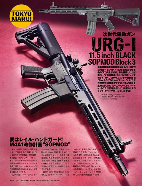 ●米軍特殊部隊の要求に応えるべく「制式採用カービンM4A1の性能をあらゆる条件下で向上させる」事を目標とした拡張パーツ供給計画「SOPMOD M4プログラム」。その最新形状“Block3“として世界中の特殊部隊ファンから熱い注目を集める「URG-I」の次世代電動ガンに、待望の11.5インチ・ブラックバージョンが登場!