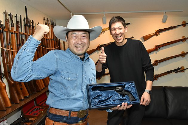 さて、ハイパー道楽さんでも動画レビューしているのでご存知の方もいるかと思いますが、トルネード吉田さんがタナカから新型コルトSAAペガサス2ガスガンのサンプルが贈呈されました。トルネード吉田さんに新型SAAを使ってもらいレビューしてほしいというタナカからの依頼により実現したのですが、新型SAAを贈呈された当日、タナカから編集部に戻ってきたトルネード吉田さんは「ブースカさん、これはいいですよ! スゴイですよっ!」といつになく興奮して私に語りかけてきました。