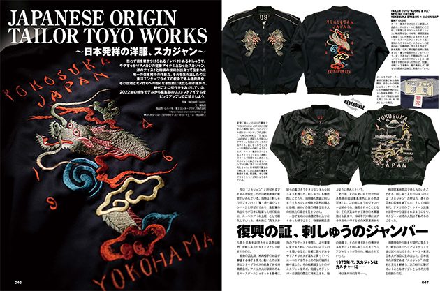 ●思わず目を惹きつけられるインパクトある刺しゅうで、今やすっかりアメカジの定番アイテムとなったスカジャン。洋のテイストと和装の技術が出会って生まれた唯一の日本発祥の洋服だ。それを生み出したのは東洋エンタープライズの前身である港商商会。その技術とモノ作りへの飽くなき情熱は現在も受け継がれ、時代ごとに傑作を生みだしている――。2022年の新作モデルから編集部のリコメンドアイテムを厳選してご紹介!