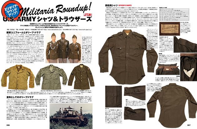 ●マニアのための資料集&毎回が永久保存版でお馴染みの本連載。今回のテーマは前号に引き続き「米陸軍シャツ&トラウザーズ」。各国軍のユニフォームの基本を構成するシャツとトラウザーズ。Part2では、将校用のウール・シャツと関連アクセサリー、そしてシャツに着用する階級章を紹介します。