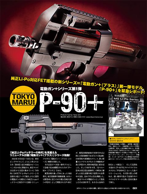 ●Li-Po対応FET搭載の新シリーズ=「電動ガン+(プラス)」第一弾モデル、「P-90+」。電動P-90シリーズの最新作でもあるP-90+は汎用性に優れた「P-90TR」のスタイルを踏襲しつつ、外観に更に磨きをかけ、中身に関してはMS・Li-Poバッテリーに対応すべく搭載される高機能FETがもたらす幾多のメリットが文字通りに+(プラス)された。2022年9月のホビーショーでの発表以来、サバイバルゲーマー達の間で話題沸騰の本作を緊急レポート!