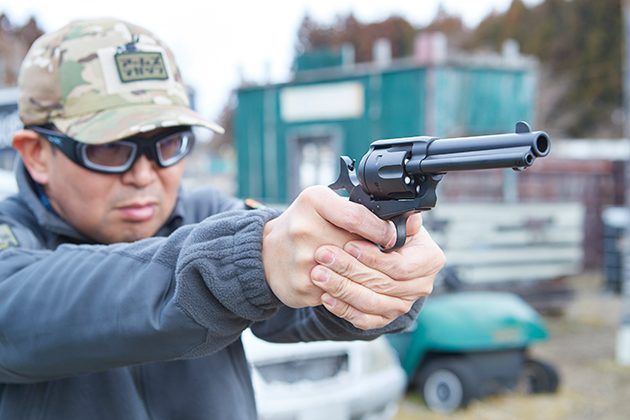アームズマガジンの誌面では3月号、4月号の2号連続で私がリポートさせていただきました。見た目は従来のデタッチャブルシリンダーモデルとほぼ同じですが、実際に製品を手にしてみると、手応えのある重量感とかっちりとしたフォルムはガスガンというよりもハイエンドなモデルガンに近いです。構えた時のバランスもよく、ハンマーをコックしたり、トリガーを引いた際のフィーリングもメリハリがあり、素早くハンマーをコックしてもシリンダーがオーバーランしてしまうようなことはありません。