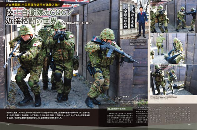 今月の自衛隊レポートは中央即応連隊/ CRR(Central Readiness Regiment)。CRRは邦人保護などの任務で海外に派遣されることも想定されているため、CQC(近接戦闘術)についても重視されています。今回は、特別企画として現役キックボクサーである小笠原瑛作選手を迎え、CRRの格闘指導官による訓練体験と取材を敢行。プロの格闘家の目線も交え、CRRの実力に迫っています。