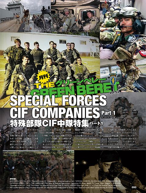 グリーンベレーの中で、対テロ(CT)、ダイレクトアクション(DA)任務に重点を置いていることで知られる”CIF中隊”。本連載で過去に何度かCIFに関する装備スタイリングは紹介したものの、肝心の「CIFとは?」については未解説。今号を皮切りにCIFの全貌に迫る、待望のCIF特集スタートです!