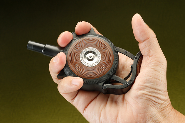 モデルガンで再現されたことが奇跡のプロテクターは、一見すると銃には見えない、ヨーヨーのような形をしていますが、実はれっきとしたリボルバーです。内部に取り出せるシリンダーが内蔵されていて、ボディ後部に設けられたトリガーを押し込むことでシリンダーが回転、内蔵式ハンマーにより弾が発射される仕組みです。通常のリボルバーはトリガーを引くと正面から見て横方向にシリンダーが回転しますが、プロテクターの場合は水車のように縦方向に回転します。弾はシリンダー内に放射線状に7発装填されます。