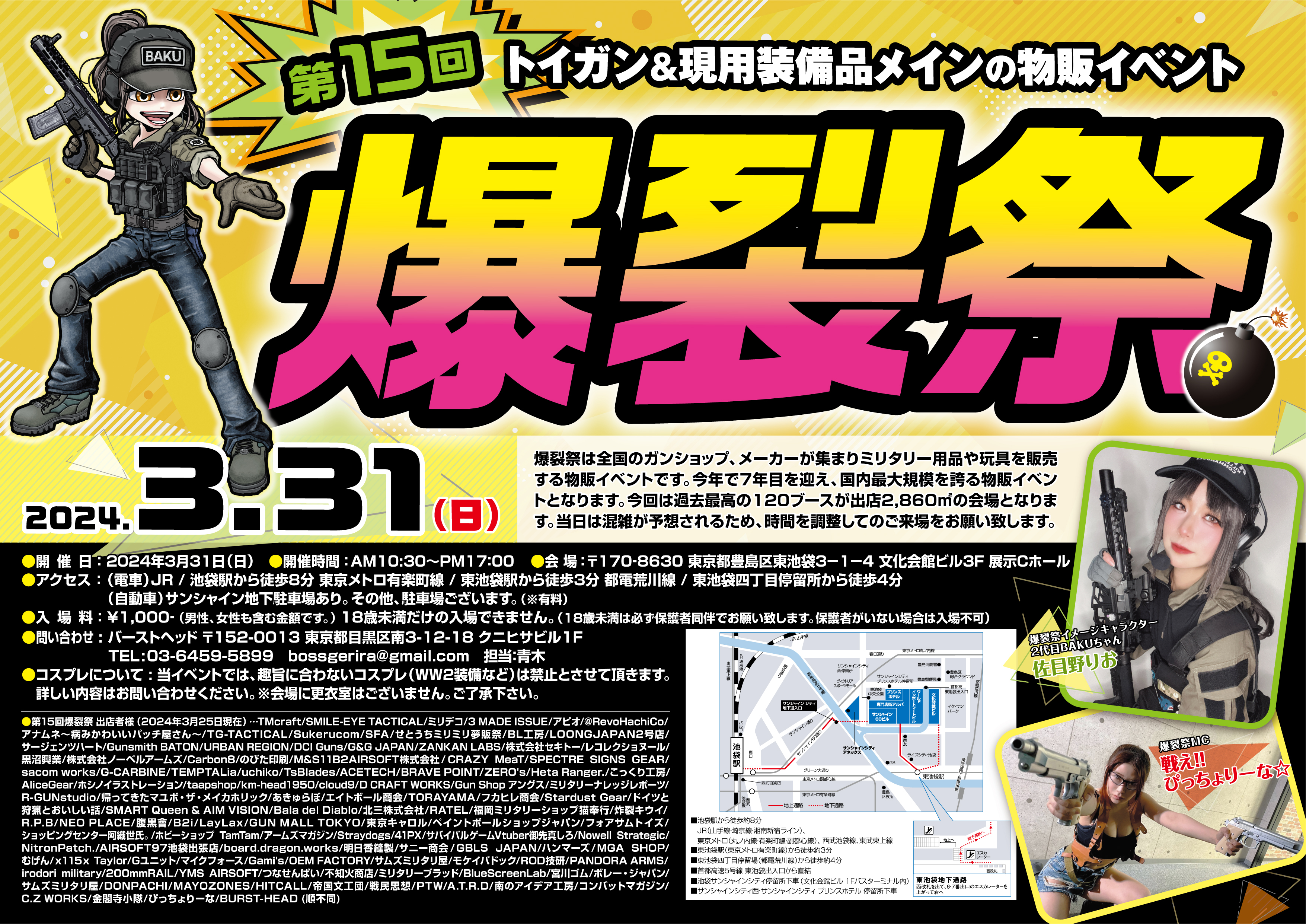 トイガン&現用装備品メインの物販イベント、第15回 爆裂祭が2024年3月31日の日曜に開催。