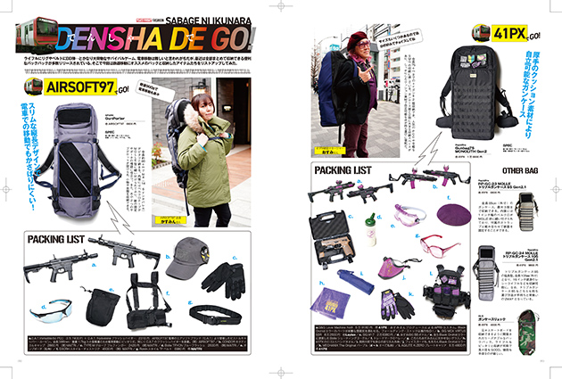 こちらは、電車サバゲーマーに伝えたい、バックパックの企画。各社オススメのバックパックに装備セットをパッキング。これぞ、雑誌の企画って、感じですよね。