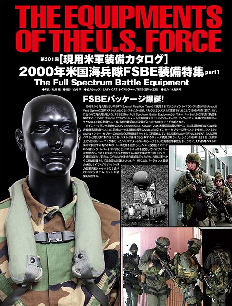 2000年頃から海兵隊MEUに納品が開始されたFSBE(The Full Spectrum Battle Equipment)システム・キット。MICH TC2000ヘルメットや海兵隊オリジナルのロード・ベアリング・ベスト、各種CQB専用ポーチやMOLLE対応防弾ベストなど、当時の最新CQBE装備が入ったキットを徹底紹介。また、今回は海中からの脱出装置として緊急浮力装置LPU-34/P RECONバージョンと最新のMEUライフ・プリザーバー浮力装置内蔵ジャケット、2種類のFSBEシステム・キットの装備も紹介する。