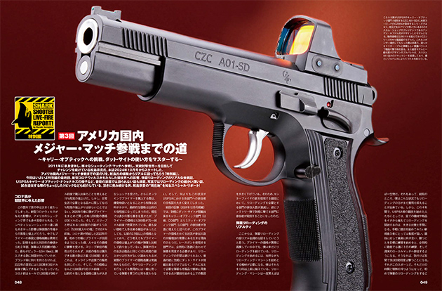 ●2011年に単身渡米し、様々なシューティング・マッチへ参戦しながら、実銃射撃世界一を目指してチャレンジを続ける鮫島宗貴氏。異国の地で様々な手続きを行ない、練習を重ね、コンディションをキープして試合に挑むということは決して簡単なことではない。2024年10月号から始まった、アメリカ国内メジャー・マッチ参戦までの道のりを、鮫島氏の経験からリアルに語ってもらう「特別編」。3回目となる今回は、新型コロナウィルスがもたらした競技界への影響、弾薬リローディングのリアルな金銭話、USPSAキャリー・オプティック・ナショナルズの様子など、普段の連載では語られない話も満載。写真ではリローディングの細かい深い話、試合遠征する際のちょっとしたトピックなども紹介している。頂きに挑み続ける男、鮫島宗貴の“現在地”を知るスペシャル・リポート!